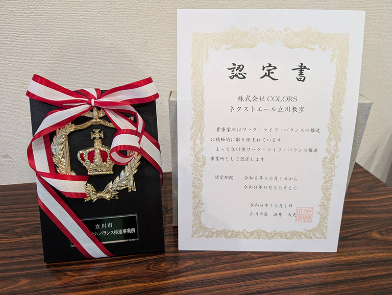 令和7年2月5日(木) たましんRISURUホールにて、認定式が行われ、酒井大史市長より、認定証・盾を授与していただきました。